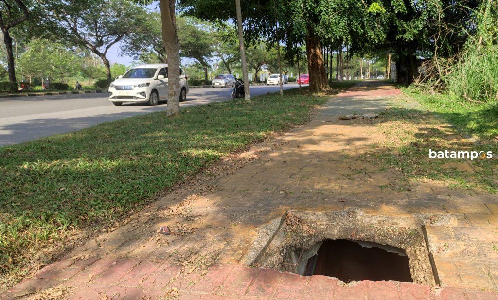 batampos – Kehilangan aset daerah kembali terjadi di Batam. Beberapa tutup drainase di area pedestrian Jalan Raja H Fisabilliah menuju Flyover Labuan Madani dilaporkan hilang, menyebabkan lubang menganga yang membahayakan pejalan kaki. Kondisi ini sudah berlangsung cukup lama, namun hingga kini belum ada tindakan perbaikan dari Pemerintah Kota (Pemko) Batam.
