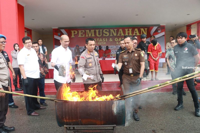 Kegiatan ini dipimpin Kapolresta Barelang, Kombes Nugroho Tri Nuryanto. Pemusnahan barang bukti ganja dilakukan dengan cara di bakar, sedangkan ekstasi diblender.