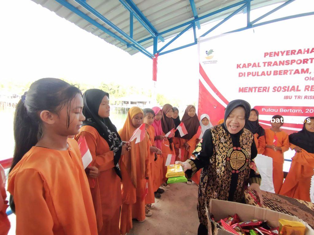 “Pintar-pintar ya kalian. Tidak boleh menyerah,” kata Menteri Risma ke anak-anak di tiga pulau di Belakangpadang.