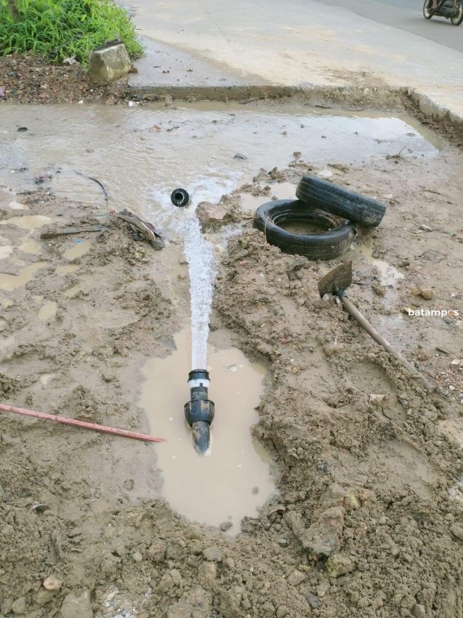 “Sepertinya itu terlindas atau kena pengerjaan perbaikan jalan. Tadi air sempat mengecil, gak mati total,” ujar Reza, salah seorang warga Bengkong.