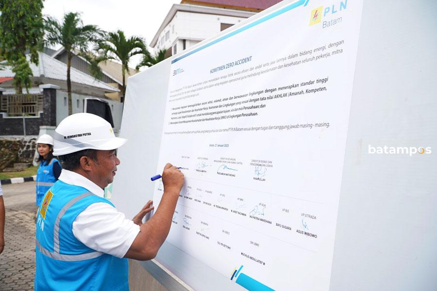 Direktur Utama PLN Batam, M. Irwansyah Putra menyampaikan sambutan dari Menteri Ketenagakerjaan Republik Indonesia, Prof. Yassierli, Ph.D. bahwa keselamatan kerja dalam lingkungan, termasuk di PLN Batam adalah prioritas utama, bukan sekadar tentang data atau statistik, melainkan komitmen nyata untuk melindungi SDM setiap insan PLN Batam.