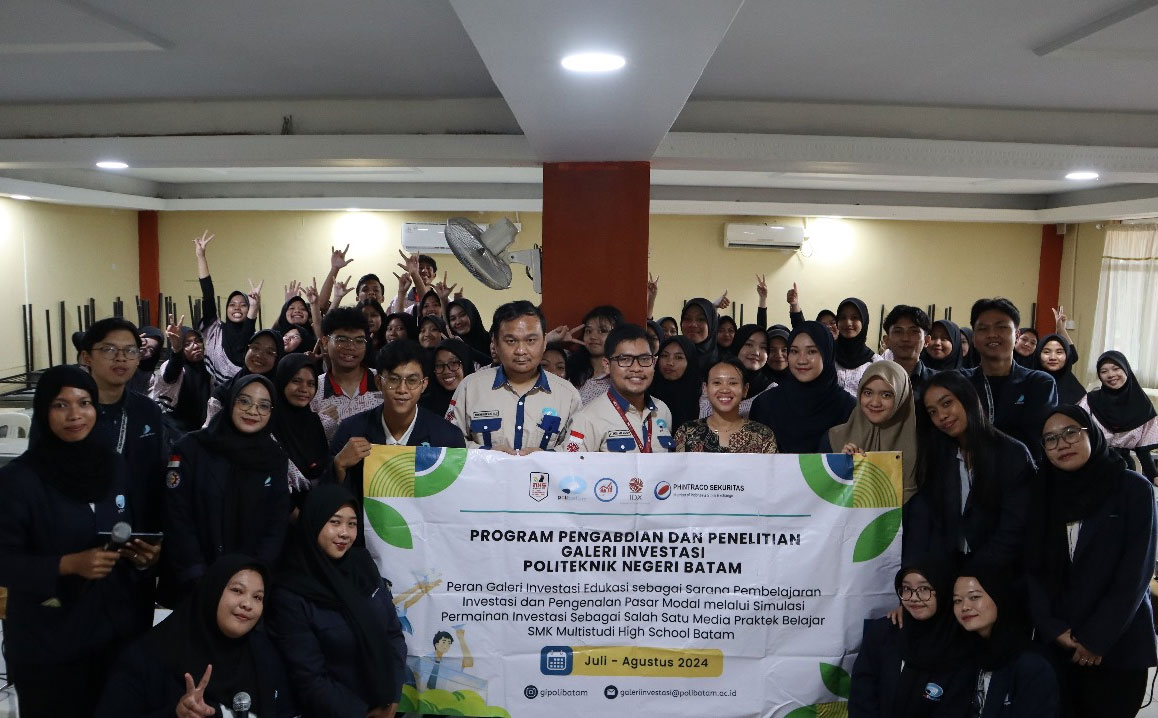 GALERI Investasi Politeknik Negeri Batam (Polibatam) meluncurkan inovasi edukatif baru bernama Polibatam Stock Rising (PSR). Program ini diselenggarakan di SMK Multi Studi High School Batam, Kamis (1/8/2024) sebagai uji coba sebelum peluncuran resmi. Dengan tema ” PSR: Media Kreatif Literasi Keuangan Pasar Modal bagi Generasi Muda Melek Investasi,” program ini bertujuan memberikan pemahaman yang lebih baik tentang investasi kepada generasi muda sejak dini.
