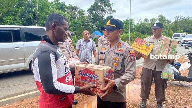 batampos – Polsek Galang menyalurkan bantuan paket sembako kepada warga yang terdampak banjir, Rabu (1/3/2023).