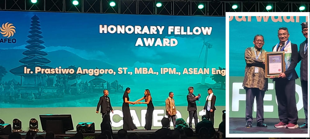 Penerimaan penghargaan honory fellow yang disebut sebagai pengakuan terhadap tokoh-tokoh keinsinyuran terkemuka atas kontribusi terhadap pelayanan keinsinyuran bagi lembaga, negara dan Asean. Di berikan langsung oleh ketua federasi organisasi keinsinyuran Se-Asean (AFEO) yang juga menjabat ketua umum PII Dr. Ir. Danis Sumadilaga, IPU.