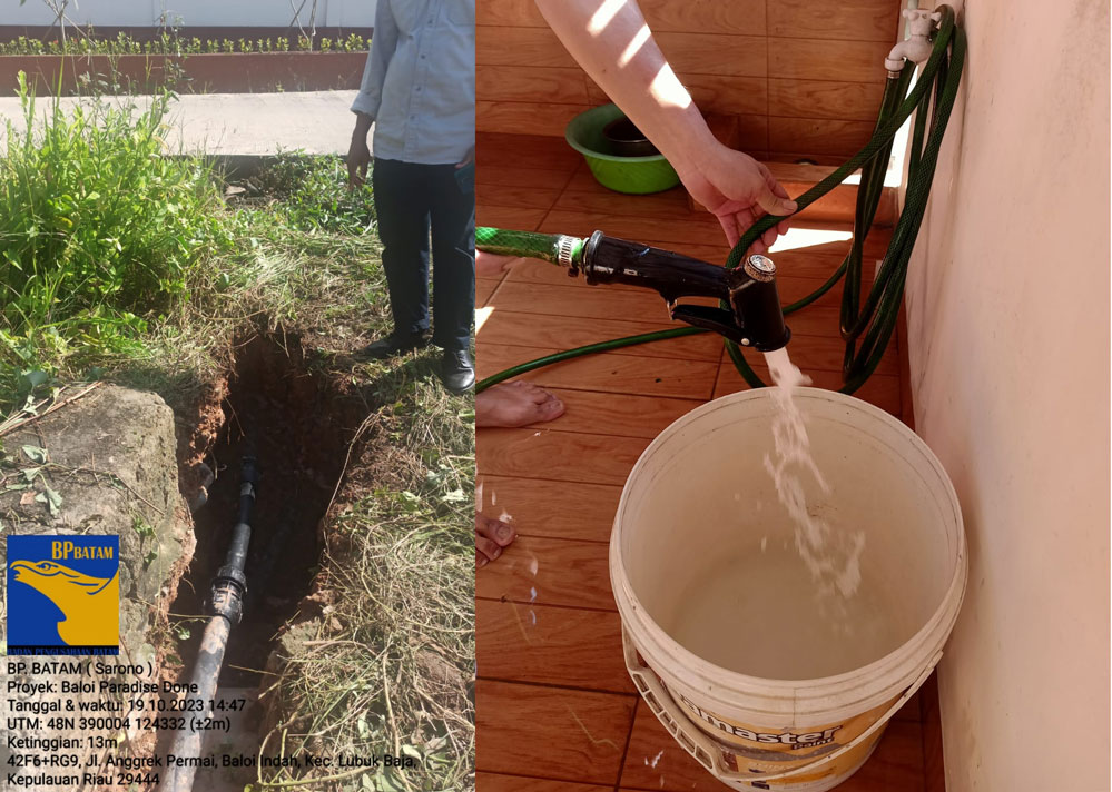Badan Usaha Sistem Pengelolaan Air Minum (BU SPAM) BP Batam menerima laporan gangguan suplai air dari warga Baloi Paradise, Kamis, (19/10/2023). Dari laporan yang diterima, Fadli warga Baloi Paradise mengaku air tak mengalir di rumahnya.