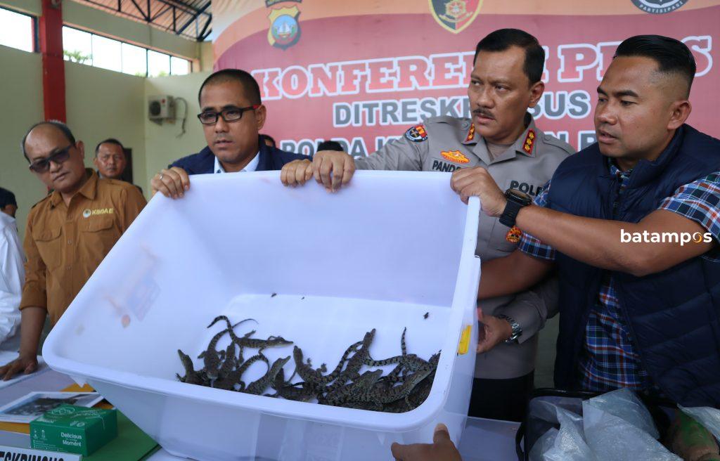 “Kami mengamankan tiga tersangka dengan kasus penyelundupan satwa dilindungi ke luar negeri yaitu sebanyak 1.500 bibit benih lobster jenis pasir , dan 52 ekor anak buaya muara,” kata Dirreskrimsus Polda Kepri, Kombes Pol Putu Yudha Prawira, Kamis (30/5).