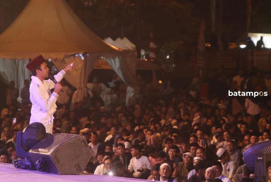 batampos – Ribuan warga Batam memadati dataran Engku Putri, Batamcenter, Sabtu (4/5) malam. Ribuan umat muslim ini bahkan sudah datang sejak sore hari, demi menyaksikan ceramah ustad Abdul Somad yang hadir dalam kegiatan kenduri syawal 1445 hijriah.