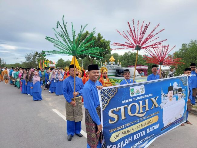 Kontingen peserta pawai taaruf STQH X Kepri Tahun 2023, Kota Batam dipimpin oleh Asisten Pemerintahan Setdako Batam Yusfa Hendri, didampingi Asisten Ekonomi dan Pembangunan Kota Batam, Firmansyah, Kepala Dinas UKM Kota Hatam, Hendri Arulan serta Kepala Dinas Komunikasi dan Informatika Kota Batam, Rudi Panjaitan. Kontingen disambut oleh Gubernur Kepri, Ansar Ahmad, dan Wakil Gubernur Kepri, Marlin Agustina, bertempat di Astaka Utama Coastal, Karimun. (*)