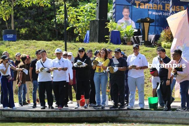 Serangkaian acara seremonial digelar untuk merayakan ulang tahun pertama Taman Rusa Sekupang, Jumat (17/3/2023). Mulai dari senam pagi bersama para pegawai BP Batam, pelepasan kura-kura, pelepasan ikan koi, hingga peresmian taman edukasi.