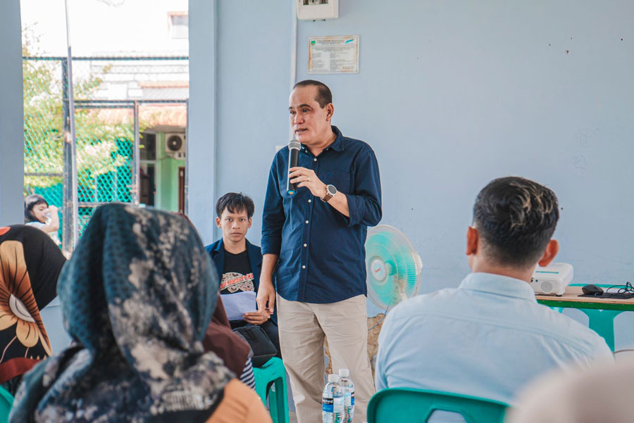 ANGGOTA Komisi IV DPRD Provinsi Kepri Sirajudin Nur memaparkan pentingnya teknologi informasi oleh posyandu dalam mencegah stunting di Kepri, di hadapan puluhan kader Posyandu di Belian Batam.