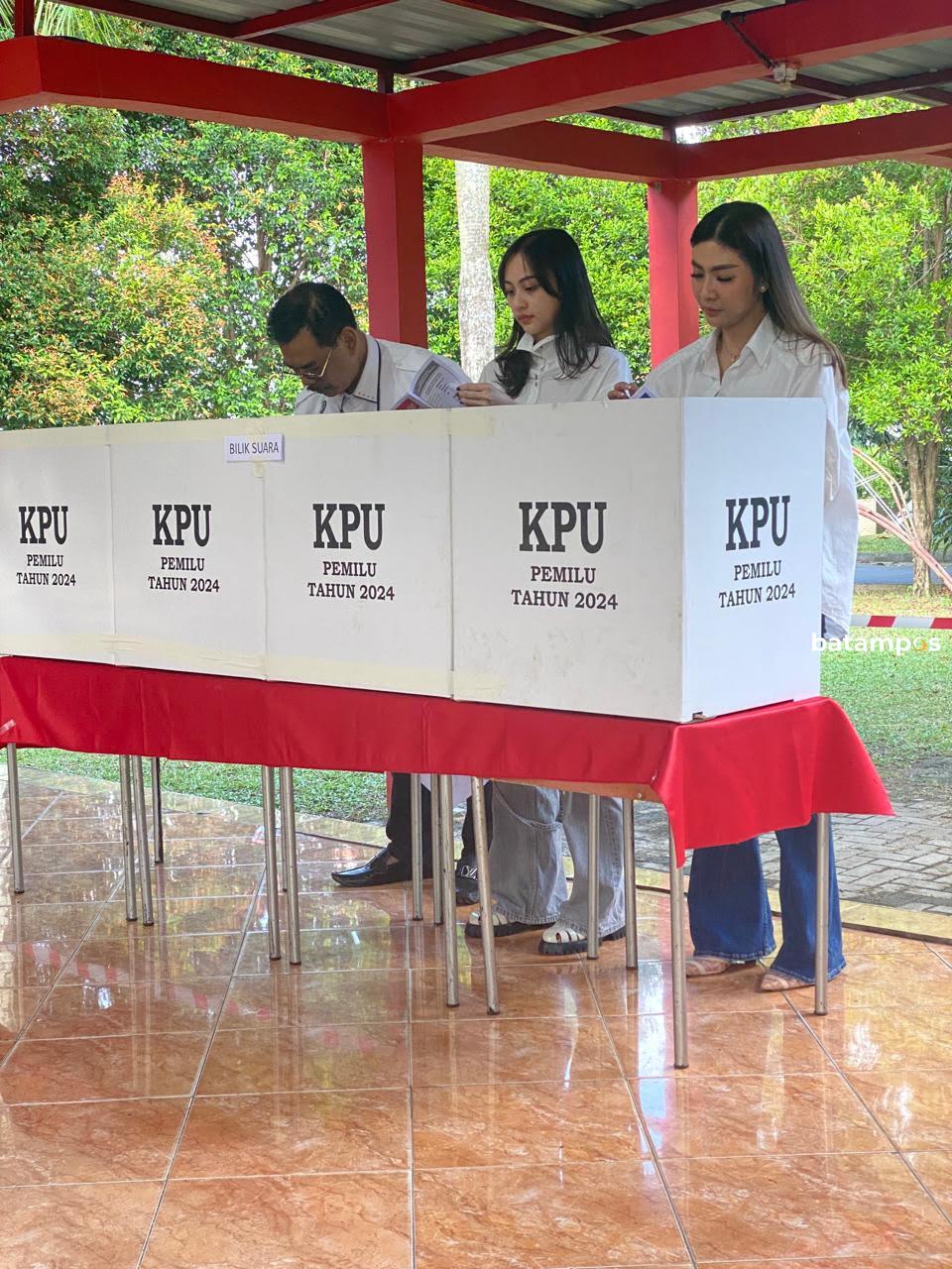 batampos– Ketua Tim Pemenangan Daerah (TPD) Kepri, Soerya Respationo hadir di Tempat Pemungutan Suara (TPS) 026 pendopo Taman Duta Mas, RW 02, Baloi, Batamkota. Soerya hadir mengenakkan kemeja putih dan berjalan kaki menuju TPS bersama dengan Dwi Ajeng Sekar Respaty dan Putra Yustisi Respaty.