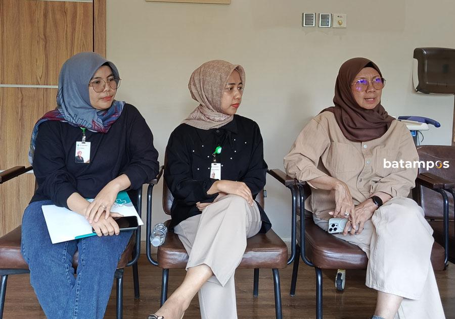 Jajaran manajemen RS Awal Bross menyamoaikan keterangan pers terkait kematian pekerja di proyek pembangunan rumah sakit di Batuaji.