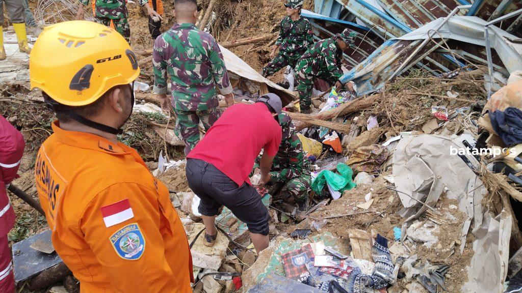 Sementara itu, Kepala Pos Basarnas Batam, Dedius, memberikan keterangan terkait proses evakuasi. Pada pukul 05.20 WIB, korban pertama berjenis kelamin perempuan berhasil ditemukan secara manual. Tak lama setelahnya, pada pukul 06.15 WIB, korban kedua, seorang laki-laki, ditemukan tidak jauh dari korban pertama. Kedua korban tersebut merupakan pasangan suami istri yang berada di perumahan Tiban Koperasi blok 27 A.