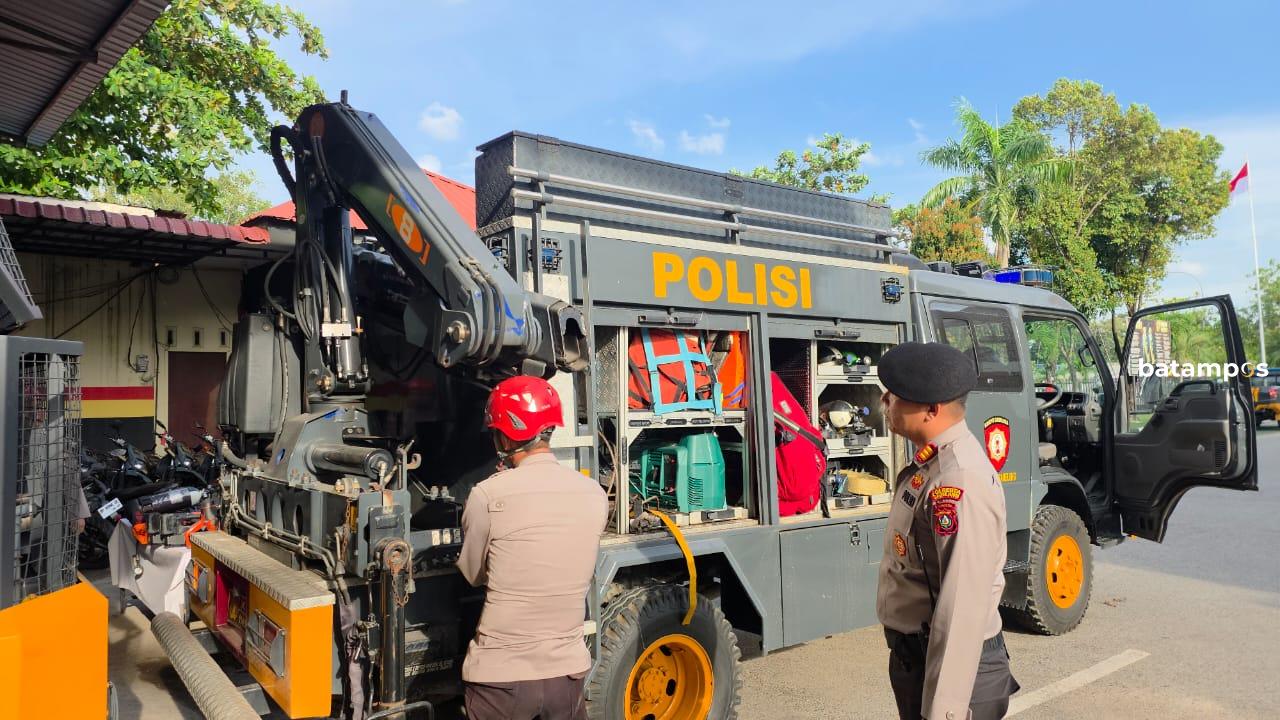 batampos – Mengantisipasi potensi bencana alam menjelang akhir tahun, Satuan Samapta Polresta Barelang melakukan pengecekan kesiapan personel dan peralatan Search and Rescue (SAR) terbatas di halaman Mapolresta Barelang, Rabu (29/10). Kegiatan tersebut dipimpin langsung oleh Kasat Samapta Polresta Barelang, AKP Satri Putra, sebagai bentuk kesiapsiagaan Polri menghadapi kondisi cuaca ekstrem yang mulai melanda wilayah Kota Batam.
