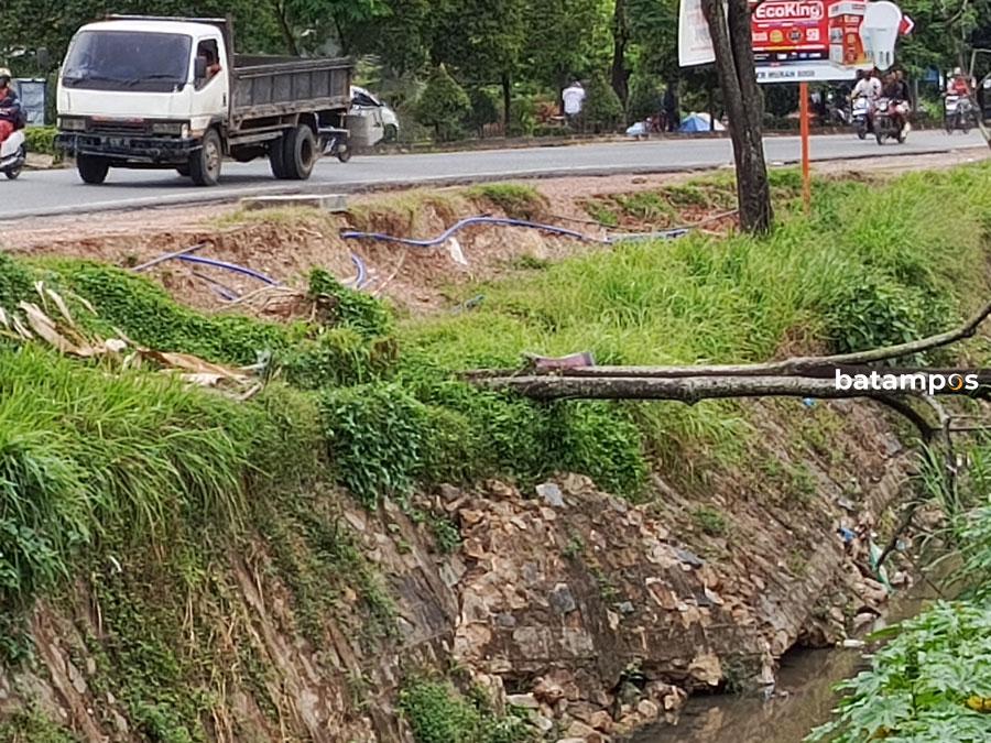 batampos – Drainase induk di pinggir Jalan R. Suprapto, Batuaji, tepatnya di depan Perumahan Cemara Asri, mengalami kerusakan parah. Tanggul drainase jebol, menyebabkan ancaman longsor di jalan utama yang menjadi akses penting bagi masyarakat sekitar. Jika tidak segera diperbaiki, kondisi ini bisa memperparah kerusakan dan membahayakan pengguna jalan.