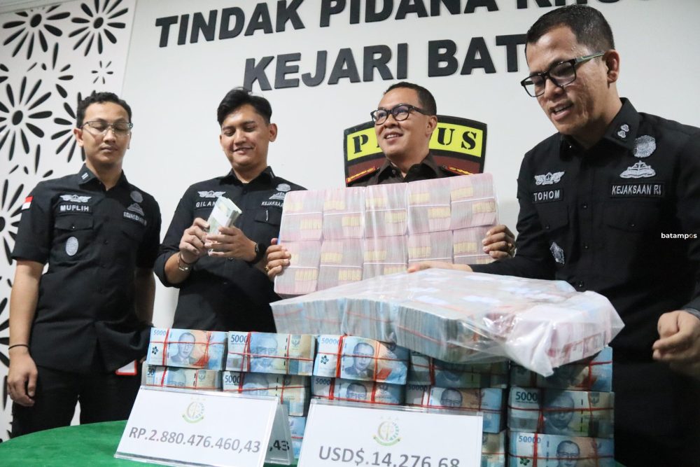 “Hari ini ia kembali menitipkan Rp 1.300.476.460,43 dan USD 14.276,60, sehingga total titipan mencapai Rp 2.800.476.460,43,” ujar Kepala Kejari Batam, I Ketut Kasna Dedi.