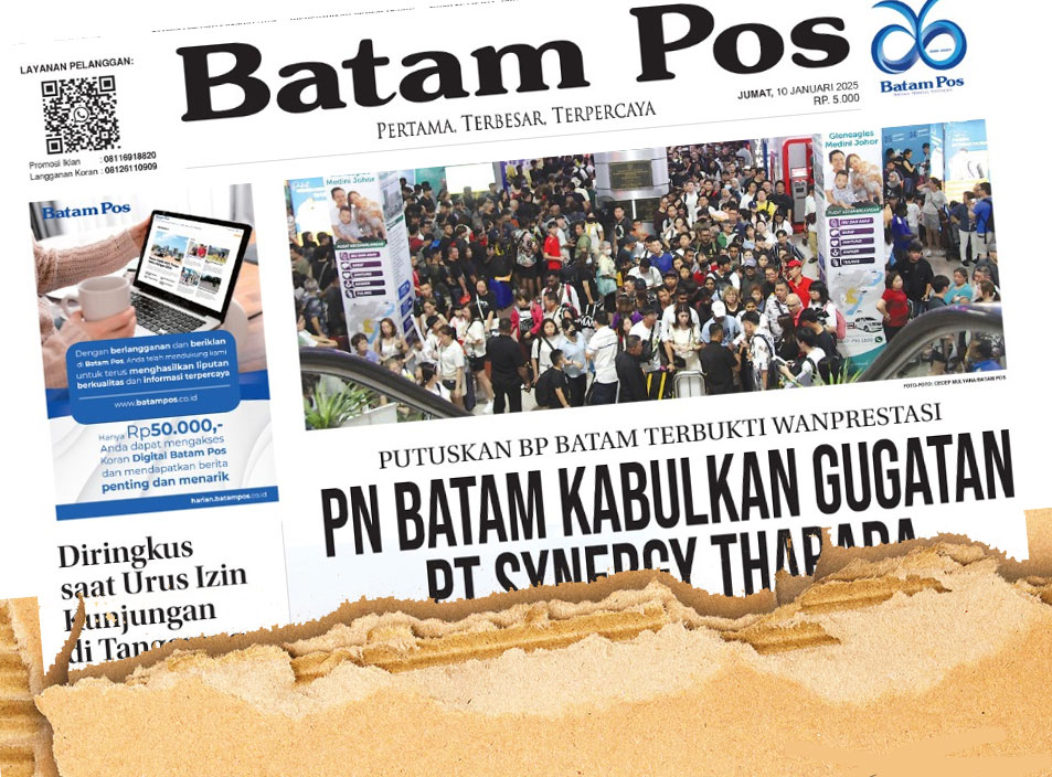 batampos – Batam Pos merilis berita berjudul PN Batam Kabulkan Gugatan PT Synergi Tharada. Pada berita ini Majelis Hakim menilai BP Batam melakukan Wanprestasi terhadap perjanjian antara BP Batam dan PT Synergi Tharada, terkait pemutusan kontrak pengelolaan Pelabuhan Feri Internasional Batam Center.