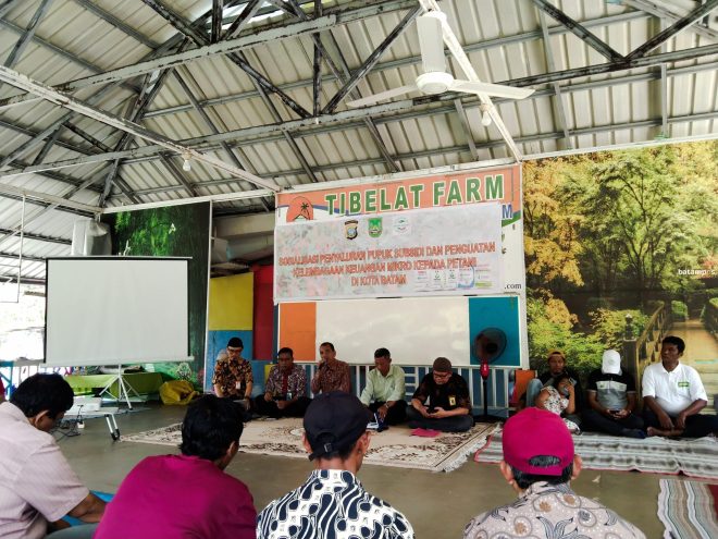 sosialiasi penyaluran pupuk bersubsidi kepada anggota kelompok tani di aula Tibelat Farm, Kaveling Pertanian Seitemiang, Kamis (28/3).