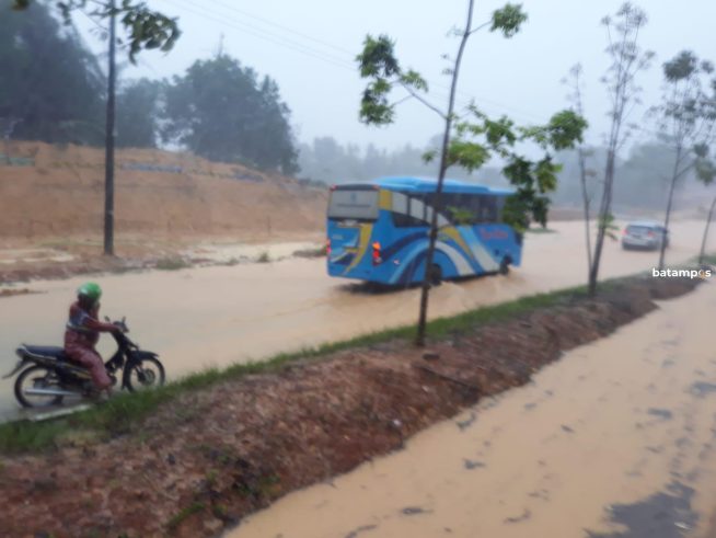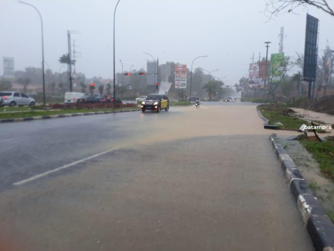 batampos-Curah hujan yang tinggi di Batam selama tiga hari berturut-turut membuat sejumlah titik kawasan di kota ini tergenang.