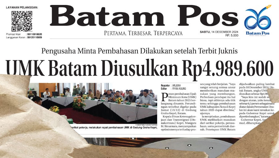 batampos – Proses pembahasan Upah Minimum Kota (UMK) Batam tahun 2025 berlangsung dinamis. Perundi-ngan tersebut digelar pada Jumat (13/12) di Gedung Graha Kepri, Batam.