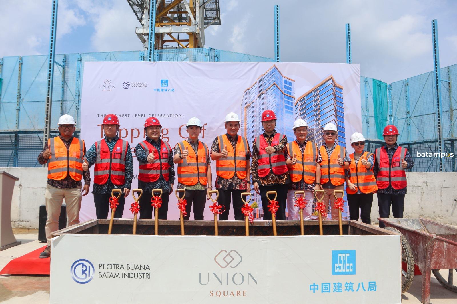 batampos– PT Citra Buana Batam Industri (CBBI) bersama PT China Construction Overseas Development Shanghai (CCODS) resmi melaksanakan prosesi topping off proyek apartemen Union Square di Harbour Bay Downtown, Batam. Proyek hunian modern ini ditargetkan selesai pada kuartal ketiga tahun 2026.