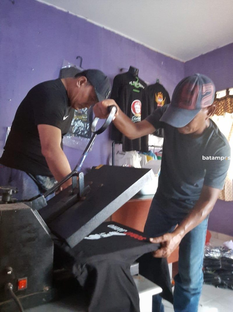 Mohammad Rohim, 46, dan Mohammad Yusuf, 50, sedang mengerjakan pesanan pembuatan kaos salah satu relawan Capres Ganjar Pranowo, Kamis (25/5/2023). Menjelang pesta demokrasi yakni Pemilu 2024, usaha sablon panen pesanan, seperti usaha sablon milik Mohammad Yusuf, Laobe, di Perumahan Aku Tahu, Seipanas, Batam Kota, ini. “Sudah ratusan kaos terkait Pemilu yang sudah saya buat, termasuk baju komisioner Panwaslu,” kata Yusuf. (*)