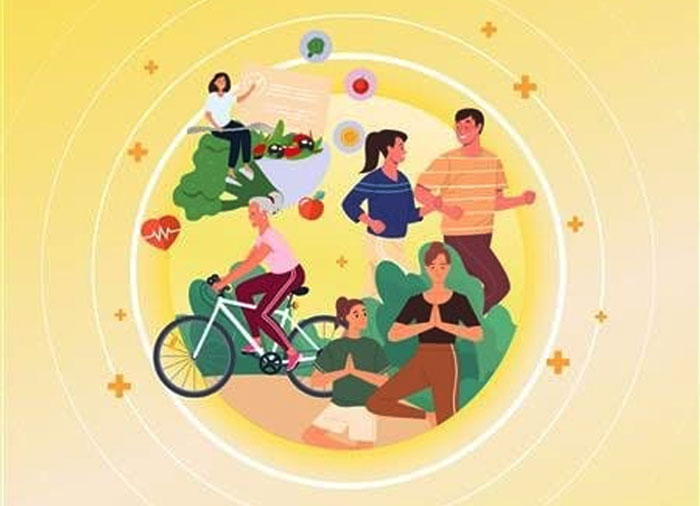 • Melakukan aktivitas fisik. Lakukan olahraga dengan durasi total minimal 150 menit setiap minggu dan bergerak aktif untuk mengencangkan otot sekurang-kurangnya dua hari dalam sepekan.