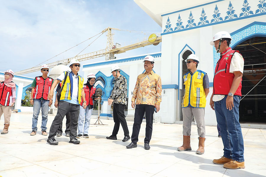 Saat peninjauan itu, terlihat sejumlah pekerja menggesa pembangunan, beberapa masih menyelesaikan kubah masjid hingga plafon, sebagian memasang granit, dan pengerjaan lainnya. ”Saya ingin memastikan masjid yang direnovasi secara utuh ini kapan selesai, sebelumnya sempat molor karena terkendala hujan dan segala macam. Saya menggesa agar segera selesai dan rencana akan kami resmikan 30 Agustus 2024,” ujar Rudi yang juga sebagai Ketua Dewan Masjid Indonesia (DMI) Kepri tersebut.
