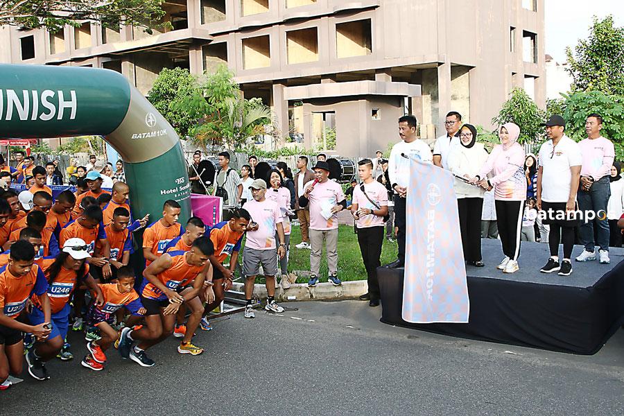 Wali Kota Batam, Muhammad Rudi, bersama Wakil Gubernur Kepri, Marlin Agustina, serta sejumlah pejabat Forkopimda Batam mengangkat bendara start tanda dimulainya lomba lari, Batam 10K di depan Hotel Santika, Batam Kota, tahun 2023 lalu. Tahun ini, kegiatan serupa akan kembali digelar, bulan depan.
