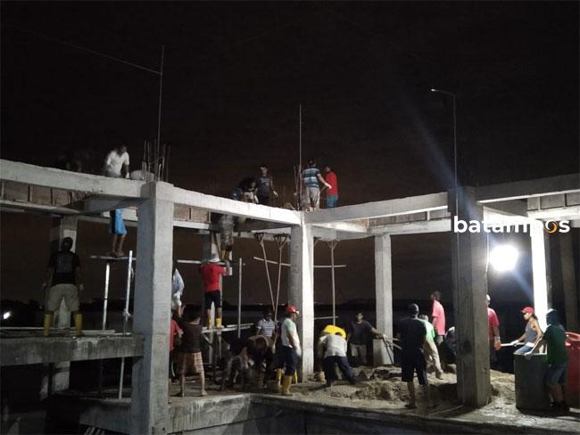 batampos – Warga Perumahan Sumberindo, Tanjunguncang, bergotong royong (Goro) untuk pembangunan Masjid Al Amin pada malam hingga dini hari.